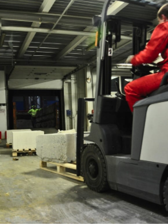 Вырезанные фрагменты демонтируем при помощи мобильного крана с профессиональной электроталью. И отвозим их на гидравлической тележке к месту временного складирования.